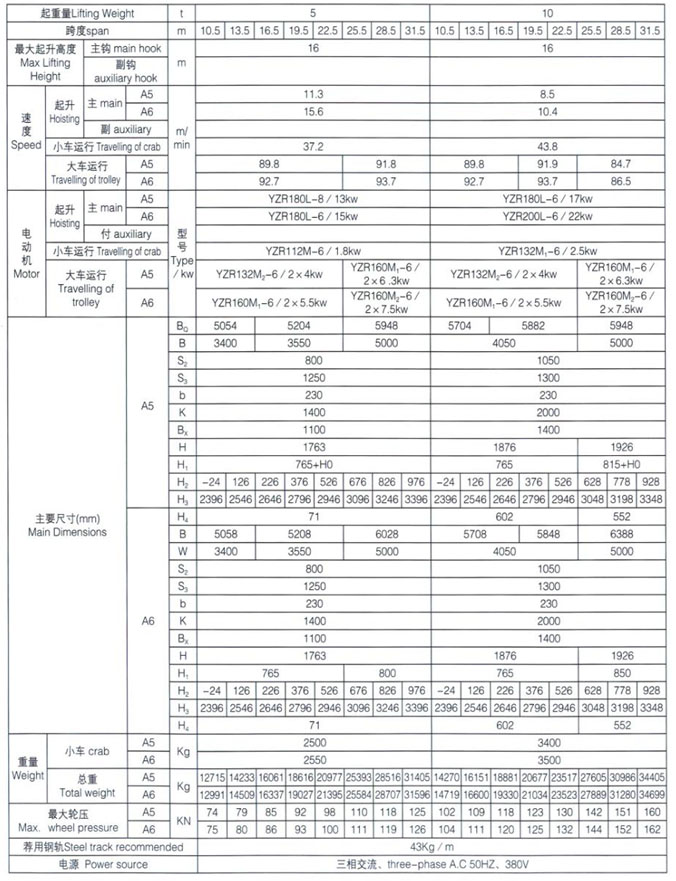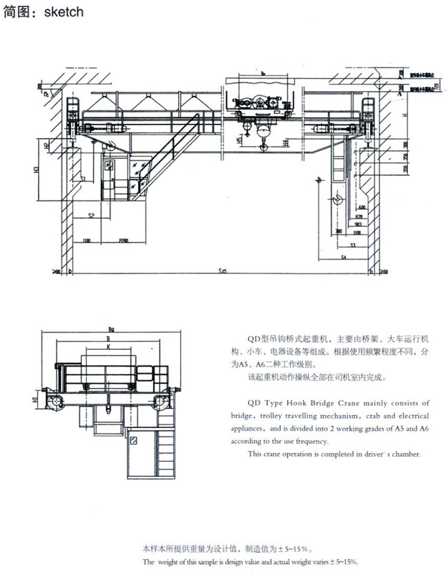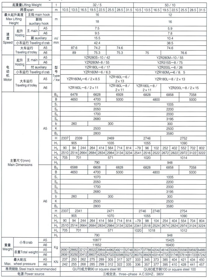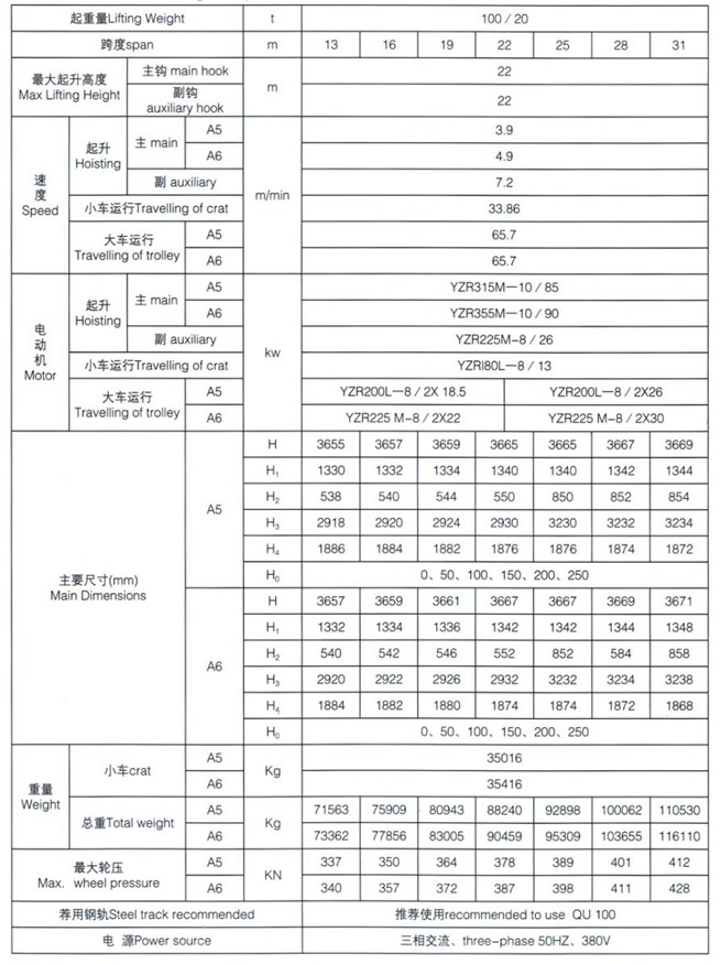 QD型5~100/20t吊鉤橋式起重機